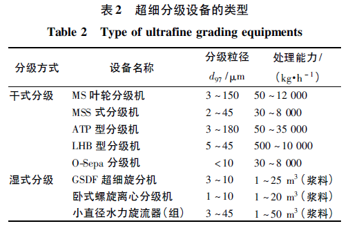 当前超细分级设备种类丰富,根据流体介质不同可分为干式与湿式两大类。